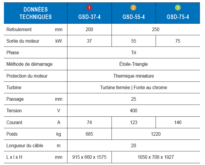 La série GSD regroupe des pompes à boues très puissantes et extrêmement résistantes, conçues pour offrir une hauteur de refoulement élevée et un grand volume de décharge. Elles sont spécifiquement développées pour fonctionner en continu dans des conditions d’utilisation difficiles.