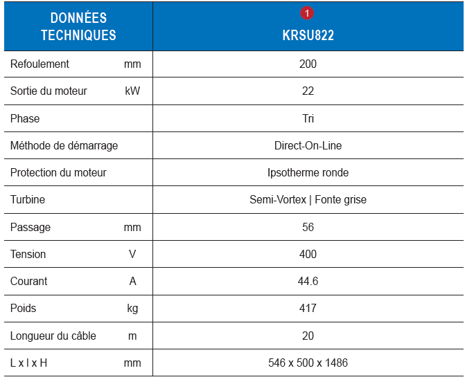 KRSU 822 – Pompe submersible triphasée pour by-pass d’assainissement