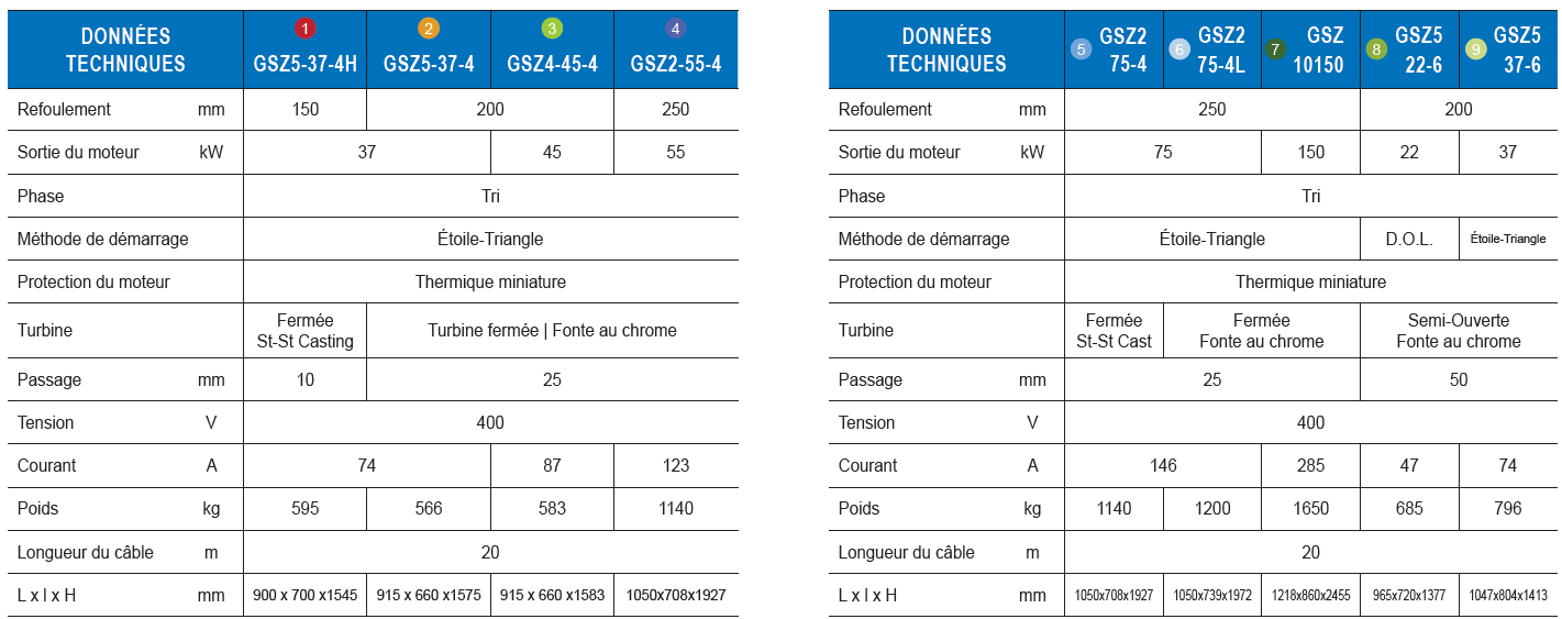La série GSZ est spécialement conçue pour le drainage d’eaux chargées à grands débits et fortes hauteurs.