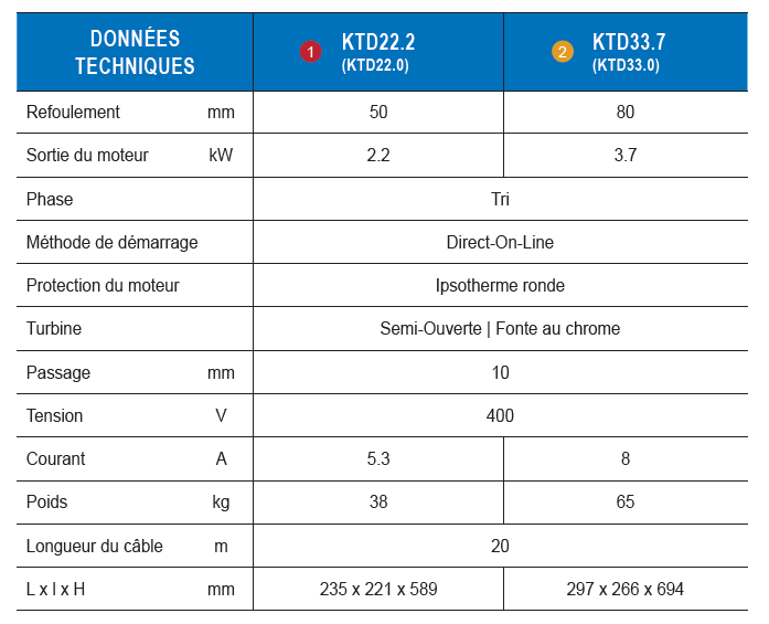 La série KTD regroupe des pompes submersibles triphasées en fonte, spécialement conçues pour le pompage et le drainage des boues chargées dans les environnements de chantier exigeants.