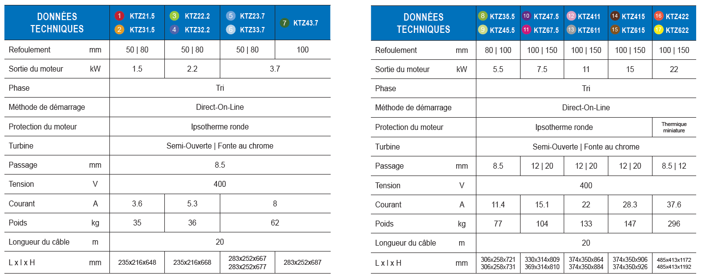 La série KTZ regroupe des pompes d’épuisement submersibles triphasées conçues pour les conditions de chantier les plus exigeantes.