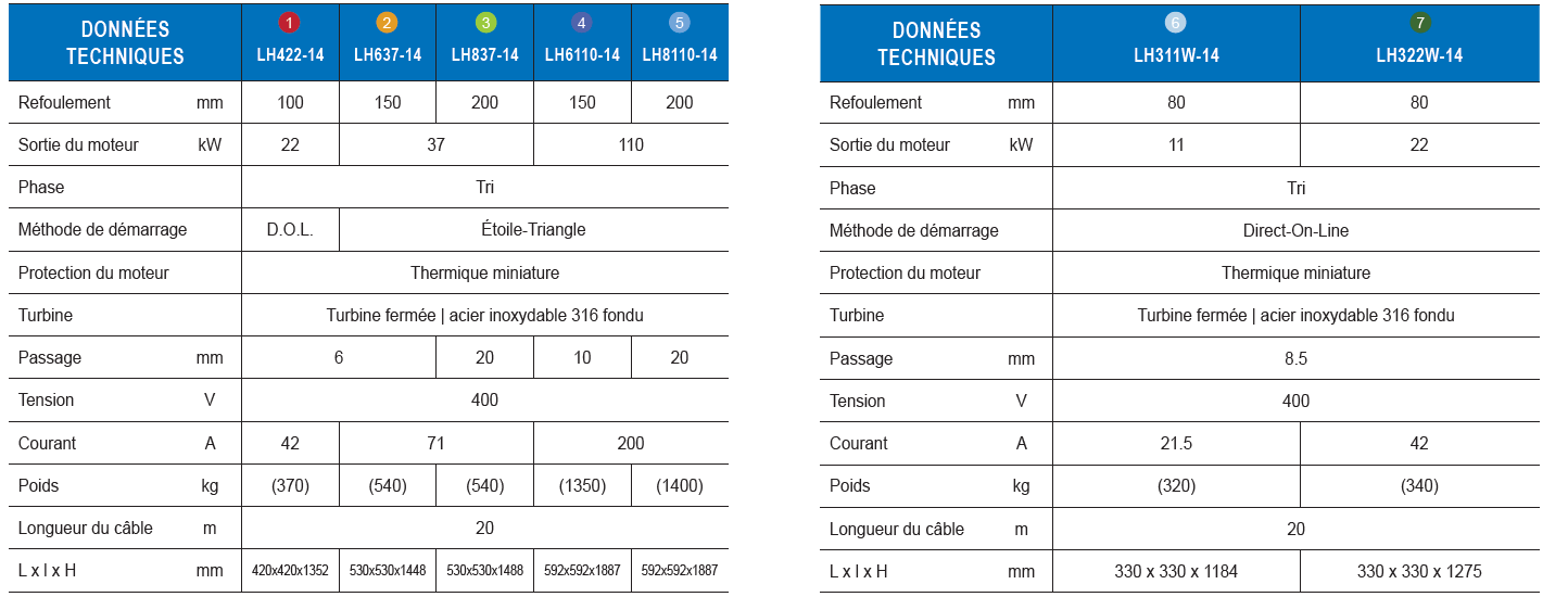 Les pompes submersibles LH-14 et LH-W-14 sont conçues pour offrir une grande hauteur de refoulement tout en assurant une résistance exceptionnelle à la corrosion. Entièrement fabriquées en acier inoxydable 316, elles conviennent parfaitement au pompage de liquides agressifs et corrosifs.