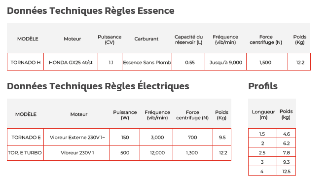 - Jusqu’à 150 kg de poussée, garantissant une compaction optimale du béton.